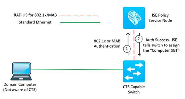 This will result in ISE communicating the SGT the authenticating endpoint belongs to as a part of the RADIUS authorization message sent back to the network access device the endpoint is connecting to. Which means that the network access device the endpoint is connected to is now aware of the SGT this endpoint belongs to.